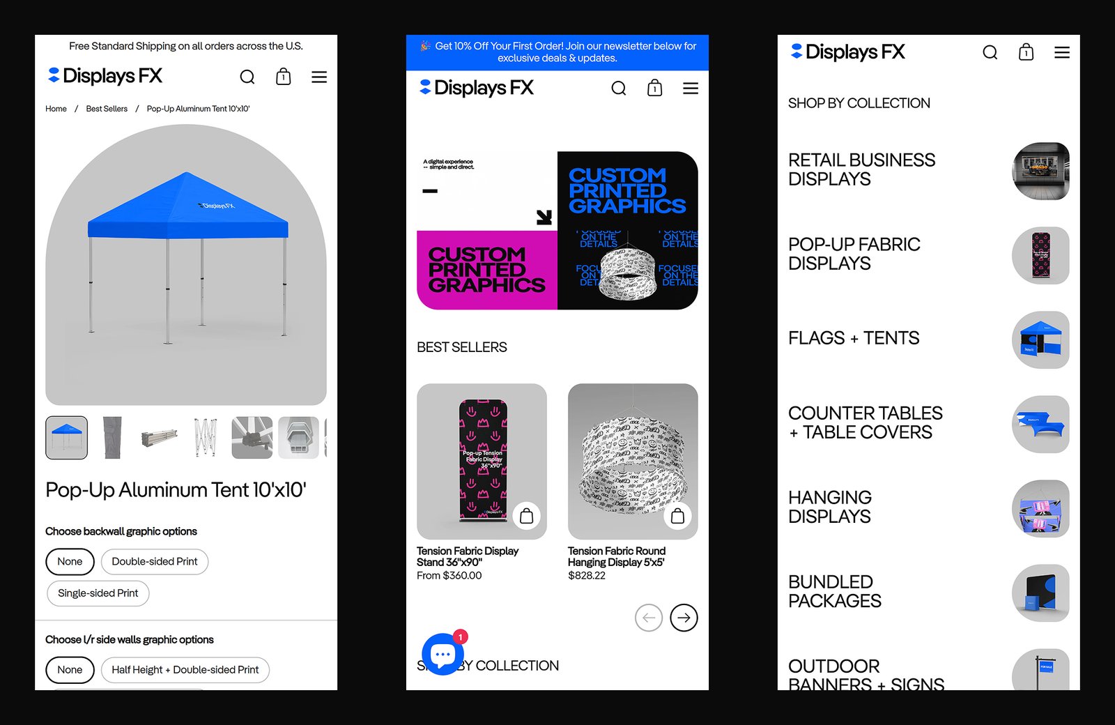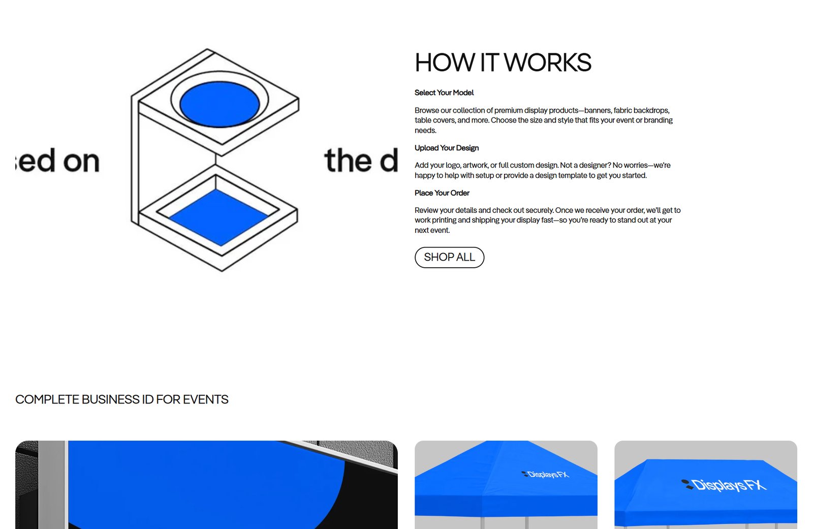 This was DisplaysFX’s first website, with no design assets or brand foundation. We had to build everything from scratch, from mockups and branding to the full website experience. The goal was to create a high-converting store with award-level design that avoided looking generic, while still being easy for the client to manage inside Shopify.