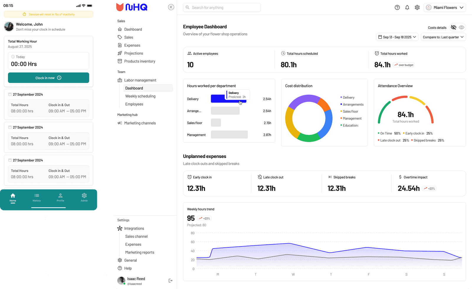 The shared tablet clock-in system connects directly to NuHQ’s admin dashboard. It brings together real-time attendance, location accuracy, and cost awareness.